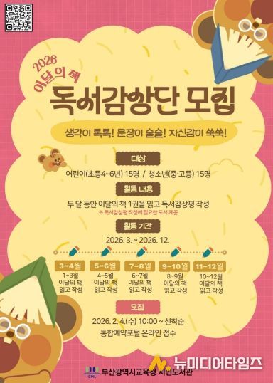 부산광역시립시민도서관(관장 이은경)은 오는 3월부터 12월까지 초·중·고 학생 30명을 대상으로 ‘이달의 책 독서감상단’을 운영한다.