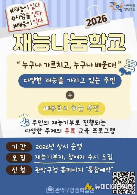 관악구가 이웃과 재능을 나누며 지역사회의 소통을 이끄는 ‘재능나눔학교’를 상시 운영한다.