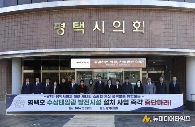 또한 “평택시의회 의원 일동은 평택호를 지켜야 할 책무를 가지고 졸속적이고 일방적으로 추진되고 있는 평택호 수상태양광 발전시설 설치 사업을 즉각 중단할 것 요구한다”고 밝혔다.