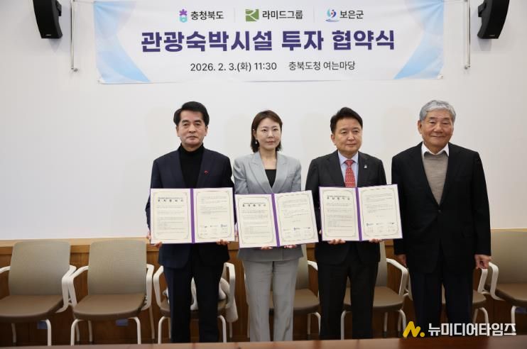 충북 보은군은 3일 충북도청 여는마당에서 충청북도·라미드관광㈜과 ‘구병산관광지 관광숙박시설 및 부대시설 조성사업’을 위한 투자협약(MOU)을 체결했다.