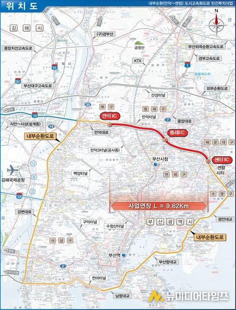 국내 최초 전 차량 이용이 가능한 대심도 터널인 '만덕~센텀 도시고속화도로'를 이용하면 북구 만덕사거리, 동래구 미남·내성·동래·안락교차로, 해운대구 원동나들목(IC) 사거리를 통과하지 않고 북구 만덕동에서 해운대구 재송동까지 바로 이동할 수 있다.