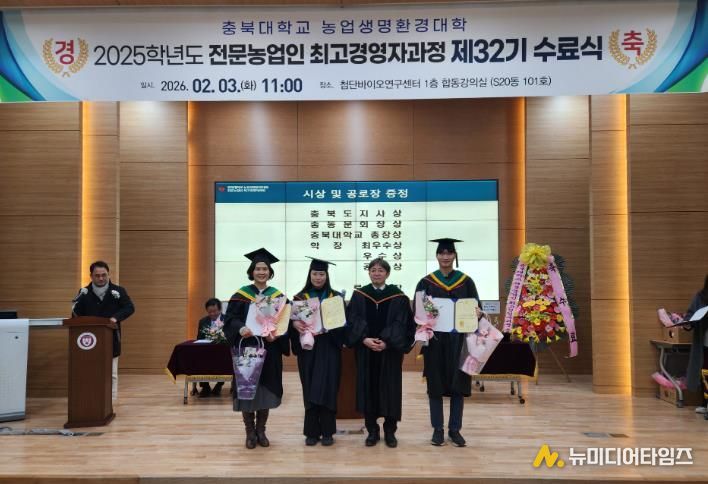 충북 진천군 농업기술센터는 역량있는 농업인 CEO를 양성하는 ‘전문농업인 최고경영자과정’ 수료식에서 진천군 농업인 강민우 씨가 충북대학교 총장상을 수상했다고 3일 밝혔다.