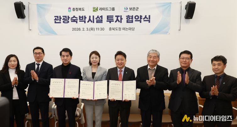 투자협약은 김영환 충북도지사, 최재형 보은군수, 문병욱 라미드그룹 회장, 문유선 라미드관광 대표이사가 참석해 체결됐으며, 본 협약에 따라 라미드그룹은 800억원 투자를 통해 2031년까지 관광호텔 54실, 콘도미니엄 30실, 복합 커뮤니티센터, 실내스포츠센터 등을 신설할 계획이다.