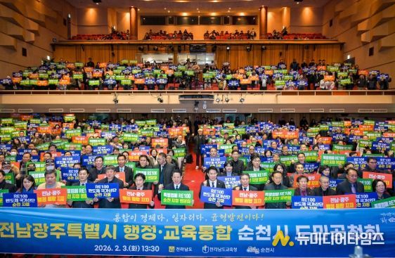 순천시는 전라남도와 함께 3일 순천문화예술회관에서 전남광주특별시 행정·교육 통합 도민 공청회를 개최하고, 통합 추진의 방향과 핵심 과제를 시민과 함께 논의했다.
