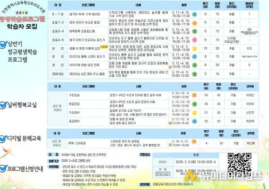 인천광역시교육청신트리도서관은 지역 주민의 생애주기별 학습 기회 제공을 위해 2026년 상반기 평생학습프로그램 학습자를 모집한다.