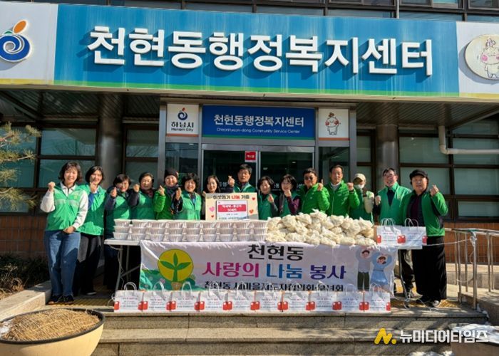 하남시 천현동은 지난 2월 3일 천현동 새마을협의회 및 부녀회 주관으로 관내 저소득층 50가구에‘사랑의 떡·물김치 나눔 행사를 실시했다'고 밝혔다.