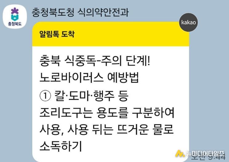 충북도는 안전한 먹거리 환경조성을 위해 2월 4일부터 도내 집단급식소, 뷔페, 대형음식점, 계절별 음식점을 대상으로 식중독 지수 및 시기별 식중독 예방 홍보 카카오 알림톡 서비스를 시행한다.
