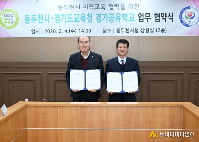 동두천양주교육지원청과 동두천시는 2월 4일, 동두천시청에서 지역교육협력을 위한 ‘동두천시-경기도교육청 경기공유학교 업무협약'을 체결했다.
