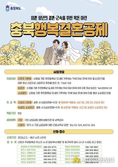 음성군은 ‘2026년 충북행복결혼공제’ 신규 참여자 58명을 선착순으로 모집한다.