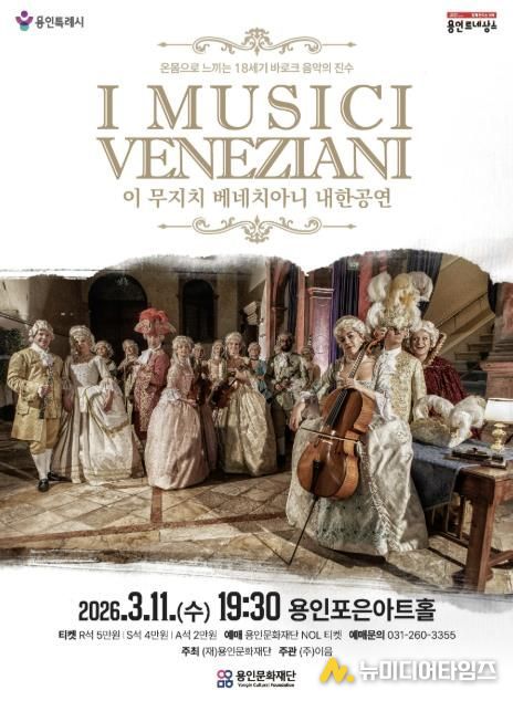 용인문화재단은 오는 3월 11일 용인포은아트홀에서 세계적인 바로크 앙상블 ‘이 무지치 베네치아니(I Musici Veneziani)’의 내한 공연을 개최한다.