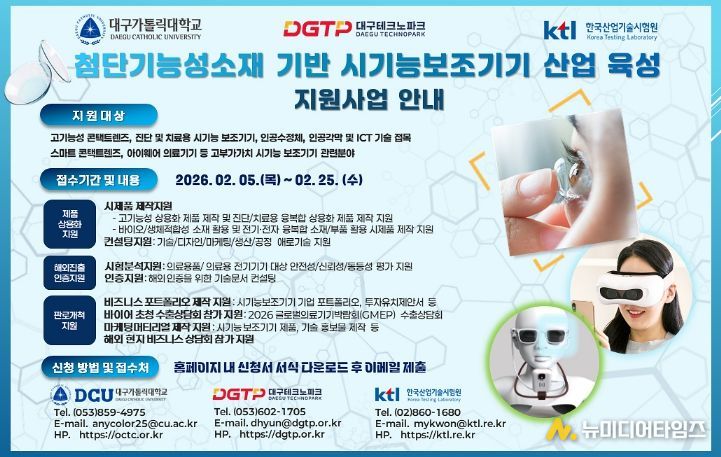 대구광역시는 산업통상부, 경상북도와 함께 ‘2026년 첨단 기능성 소재 기반 시(視)기능 보조기기 육성사업’을 본격 추진하고, 참여기업을 모집한다.