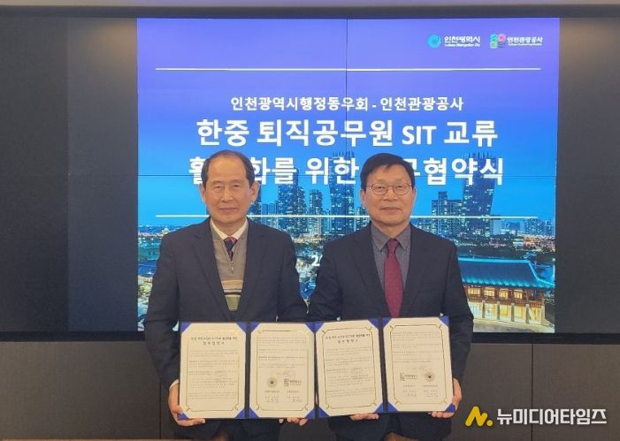 인천관광공사와 인천광역시행정동우회는 4일 인천관광공사 디지털 회의실에서 ‘한·중 퇴직공무원 특수목적관광 교류 활성화를 위한 업무협약(MOU)’을 체결했다.