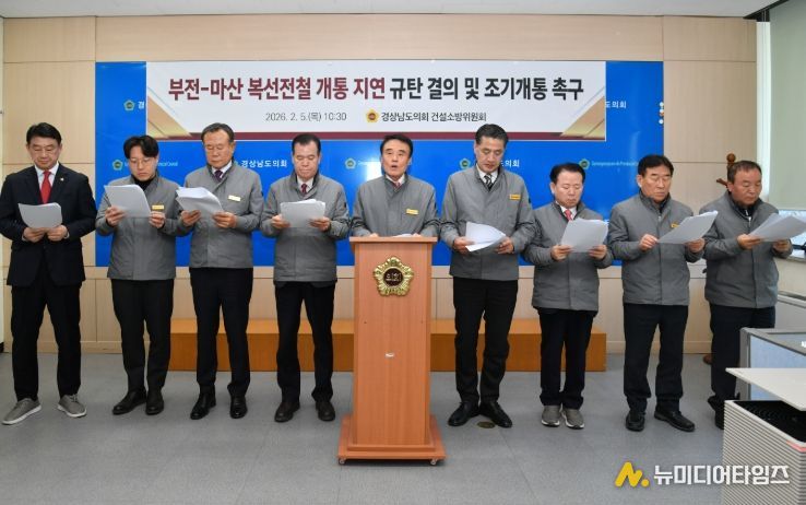 경상남도의회 건설소방위원회는 5일 기자회견을 열고, 6년째 표류 중인 ‘부전~마산 복선전철’ 사업의 조속한 개통을 촉구하며 정부의 무책임한 행정을 강력히 규탄했다.