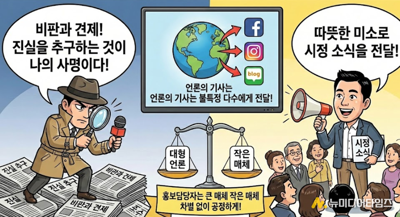 그러나 여기서도 공정함이 필요하다. 홍보담당자는 큰 매체와 작은 매체를 선입견으로 재단해서는 안 된다. 매체의 규모가 아니라 콘텐츠의 질과 영향력, 시민들에게 전달되는 실제 효과를 기준으로 판단해야 한다. 작은 매체라고 해서 무시하거나, 큰 매체라고 해서 무조건 우대하는 것 모두 공정하지 않다. 모든 언론을 동등한 시선으로 바라보고, 객관적 기준으로 평가하는 것, 그것이 공무원이 지켜야 할 중립성이다.
