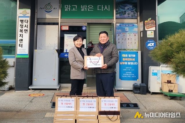 전남 나주시 다시면은 설 명절을 앞두고 경기도 광주 소재 ㈜대원산업개발(대표이사 이근배)로부터 관내 취약계층을 위한 햄 선물 세트 65개(350만 원 상당)를 기탁받았다고 5일 밝혔다.