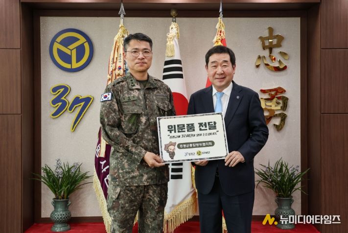 이재영 군수는 지난 5일 육군 제37사단을 찾아 지역 안보를 책임지고 있는 군 장병들의 노고에 감사의 뜻을 전하고, 위문품으로 지역화폐인 증평사랑으뜸상품권을 전달했다.