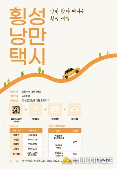 한편, 낭만택시 이용 방법과 상세한 할인 일정은 향후 횡성문화관광재단 누리집(홈페이지)을 통해 공지될 예정이다.