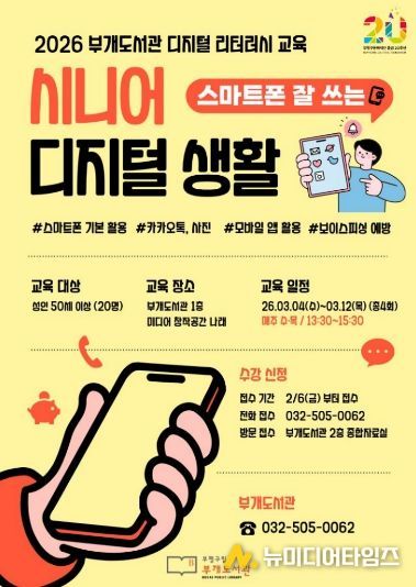 부평구문화재단 부개도서관은 오는 3월, 어르신들의 디지털 활용능력(리터러시)을 높이기 위한 교육 ‘시니어 디지털 생활’ 프로그램을 운영·모집한다고 밝혔다.
