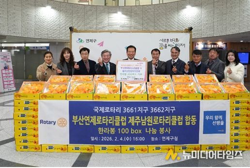 연제구는 지난 2월 4일 부산연제로타리클럽(회장 한지호)과 제주남원로타리클럽(회장 현윤완)으로부터 지역 사회복지시설 지원을 위한 한라봉 100박스(250만 원 상당)를 전달받았다.
