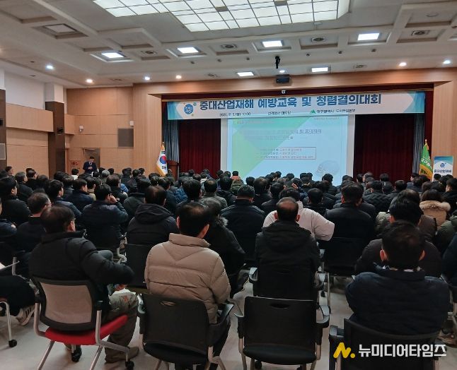 대구광역시 도시건설본부는 공사 현장의 중대산업재해 예방과 안전문화 확산을 위해 2월 9일(월) 오전 10시 산격청사 대강당에서 ‘중대산업재해 예방교육 및 현장 관계자 청렴교육’을 실시했다.
