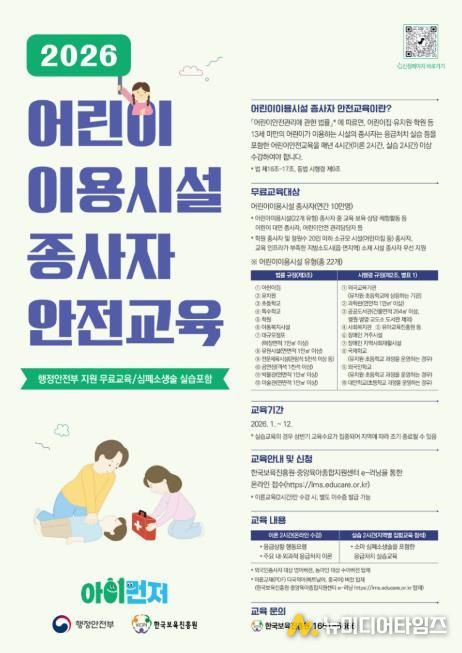 원주시는 행정안전부가 주관하는 ‘2026년 어린이 이용시설 종사자 안전교육’을 실시한다.