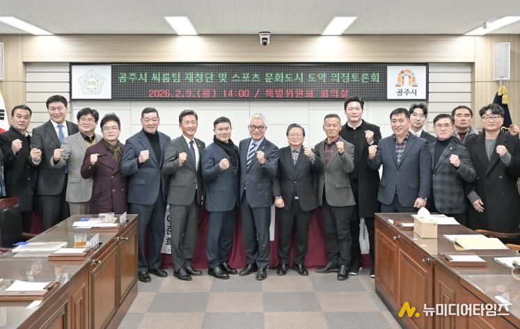 공주시의회는 지난 9일 오후 2시, 의회 특별위원회실에서 좌장을 맡은 이상표 의원과 이준희 대한씨름협회장, ‘씨름의 아이콘’ 김기태 영암군민속씨름단 감독, 손한동 충남씨름협회장, 이일주 공주문화원장 등 대한민국 씨름계와 지역 문화계를 대표하는 거물급 인사들이 머리를 맞대고 ‘공주시 씨름단 재창단 및 문화도시 도약’을 위한 구체적인 해법을 모색했다.