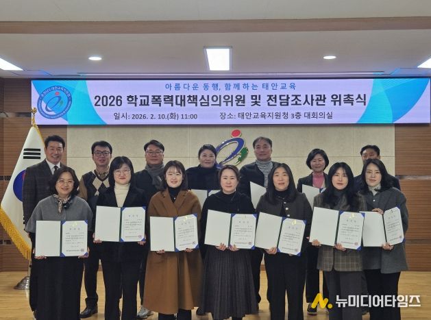 충청남도태안교육지원청(교육장 지재규)은 10일(화), 태안교육지원청 대회의실에서 ‘2026-2027학년도 학교폭력대책심의위원회 위원 및 2026학년도 학교폭력 전담조사관 위촉식’을 개최했다.
