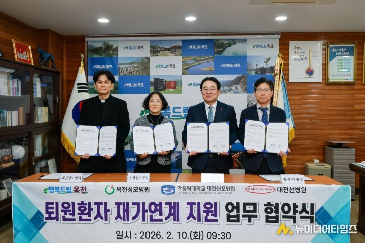옥천군은 의료·요양 통합돌봄사업의 일환으로 10일 군청 군수실에서 ‘퇴원환자 재가연계 지원’을 위한 업무협약을 체결했다고 밝혔다. 이번 사업은 오는 3월 27일 시행된다.