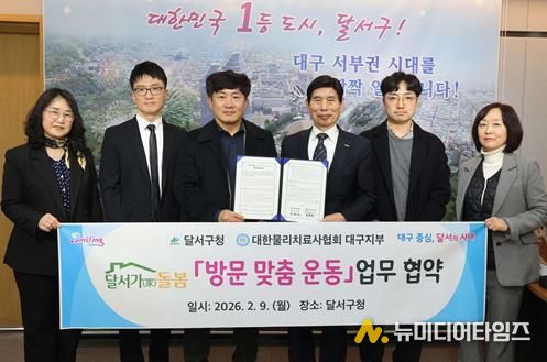 대구 달서구는 지난 9일, 지역사회 통합돌봄 본사업 시행을 앞두고 대한물리치료사협회 대구지부와 업무협약을 체결하고, ‘달서형 통합돌봄’에 방문 맞춤운동 서비스를 새롭게 도입한다.