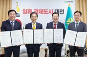 대전시는 7일 대전시청 10층 응접실에서 KAIST, 충남대학교, (사)바이오헬스케어협회(회장 맹필재)와 함께 의과학 융복합 인재양성 및 공동연구를 위한 업무협약을 체결했다. 이번 협약은 대전이 보유한 풍부한 바이오․의과학 연구 인프라와 우수한 교육․산학 연계 역량을 바탕으로 임상과 기초연구를 융합한 의사과학자(Physician Scientist) 및 의과학 분야 고급 연구인력 양성체계 구축을 위해 추진됐다. 협약에 따라 4개 기관은 ▲의사과학자 및 의과학 전문인력 공동 양성 ▲공동 연구 및 기술개발 협력 ▲교육·연구 인프라 및 정보 공유, ▲현장 실습 및 임상연계 교육 ▲지역 바이오기업 협력사업 등을 본격적으로 추진할 예정이다. 시는 본 협약을 통해, KAIST의 첨단 연구 역량, 충남대의 의학 및 임상 기반, 바이오헬스케어협회의 산업계 네트워크, 대전시의 행정 지원을 결합하여, 교육-연구-산업-정책이 유기적으로 연결되는 지역 혁신 모델 구현을 꾀하고 있다. 이장우 대전시장은 “대전은 과학기술과 의료, 산업이 조화를 이루는 대한민국 대표 바이오도시로, 이번 협약을 통해 연구와 임상이 결합된 고급
