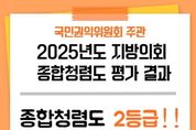 서산시의회는 지난 23일 국민권익위원회(이하 국민권익위)가 발표한 ‘2025년 종합청렴도 평가’에서 2등급을 달성했다. 이번 평가는 매년 국민권익위가 전국 243개 광역·기초의회를 대상으로 △청렴체감도, △청렴노력도, △부패실태 3개 분야를 종합하여, 결과에 따라 지방의회별 청렴도 등급을 공개한다. 서산시의회는 전년도 대비 청렴체감도에서 한 단계 상승한 2등급, 청렴노력도는 3등급을 기록하며, 전국시의회 평균을 상회하는 성적으로 종합청렴도에서 2등급을 획득했다. 서산시의회는 그동안 청렴도 향상을 위해 △반부패 추진 계획 수립, △부패 유발요인 정비, △부패방지 제도 구축, △이해충돌 방지제도 이행력 제고, △고위직 청렴 교육 실효성 제고 등 다양한 노력을 추진해왔다. 조동식 의장은 “이번 종합청렴도 평가에서 한 단계 상승한 2등급 달성은 우리 의회의 청렴 운영 노력이 대외적으로 인정받은 결과”라며, “앞으로도 더욱 청렴하고 투명한 의회를 만들기 위해 최선을 다하겠다”고 전했다.