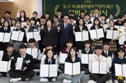 대전 동구는 11일 구청 대회의실에서 ‘2025년 동구 차세대인재육성장학재단 장학증서 수여식’을 개최하고, 장학생 78명에게 총 7,800만 원 규모의 장학금을 전달했다고 밝혔다. 이번 장학사업은 지역의 인재를 체계적으로 발굴·육성하기 위한 재단의 핵심 프로그램으로, 올해는 성적 우수·초지·특기 등 세 개 분야에서 선발된 고등학생들에게 1인당 100만 원의 장학금이 지원됐다. 이날 수여식에는 재단 이사장인 박희조 구청장을 비롯해 재단 이사, 장학생, 학부모 등 100여 명이 참석했으며, 장학증서 수여 후에는 재단 사업 소개와 장학생 격려 메시지가 이어지며 학생들의 성장을 응원하는 시간이 마련됐다. 박희조 동구청장은 “이번 장학사업을 통해 우리 학생들이 학업과 진로에 더욱 집중할 수 있기를 바란다”며 “앞으로도 미래세대가 가진 잠재력이 지역의 성장으로 이어질 수 있도록 교육·진로·역량 강화 등 다양한 지원을 지속적으로 확대해 나가겠다”고 말했다. 한편, 동구 차세대인재육성장학재단은 2009년 첫 장학사업을 시작한 이후 지난해까지 총 694명의 학생에게 7억 4천6백만 원의 장학금을 지원했으며, 올해도