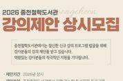 원주시 중천철학도서관은 시민의 다양한 요구에 부응하기 위해 2026년 독서 문화 프로그램 제안을 상시로 접수한다. 제안 분야는 중천철학도서관에서 진행할 수 있는 인문학 관련 독서 문화 프로그램이다. 강의 제안을 희망하는 시민 또는 강사는 도서관 홈페이지에 게시된 공지사항을 참고해 이메일로 서류를 제출하면 된다. 제안 반영 결과는 도서관 내부 검토 후 선정 프로그램에 한해 개별 통보될 예정이다. 이훈주 도서관장은 “시민의 욕구를 충족하는 참신한 신규 프로그램이 발굴되길 기대한다”라며, “역량 있는 강사와 시민 여러분의 적극적인 지원을 기다린다”라고 말했다.