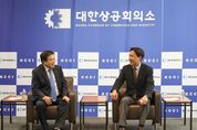 김진태 강원특별자치도지사가 11월 24일, 서울 대한상공회의소를 방문해 7대 미래산업 육성, 교통망 확충, 지역경제 활성화를 위한 협력 방안을 논의했다. 간담회에는 대한상공회의소 박동민 전무이사, 김녹영 탄소중립실장, 조성환 지역경제팀장, 엄정용 도상공회의소연합회장 등이 참석했다. 대한상공회의소는 산업계와 정부 간의 가교 역할을 하는 법정 민간경제단체로 전국 74개 상공회의소와 약 18만 개 기업회원을 보유하고 있으며, 경제 정책 논의, 기업 관련 법 제도 개선, 규제 개선 등 다양한 경제 분야에서 활동하는 주요 기관이다. 이번 간담회는 대한상공회의소의 전국‧글로벌 네트워크를 활용해, 도가 추진 중인 7대 미래산업 전략의 산업 생태계 강화와 성장을 위한 협력 방안을 논의하기 위해 마련됐다. 도는 강원도의 주요 에스오시(SOC) 사업인 용문~홍천 광역철도, 포천~철원 고속도로, 삼척~강릉 고속화 철도 등을 설명하며 도의 산업 경쟁력 강화에 필수적인 사업임을 강조하며, 대한상공회의소의 지지와 정책적 협력을 요청했다. 또한 소양강댐 냉수를 활용하는 ‘수열에너지 클러스터’는 초대형(240MW