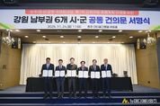 강원 남부권 6개 시군(원주·횡성·영월·평창·정선·태백)은 24일 오전 11시, 호텔인터불고 원주에서 국토교통부의 ‘제7차 공항개발 종합계획’에 ‘원주(횡성)공항의 국제화 사업 반영’을 요청하는 공동 건의문을 채택했다. 이날 서명식에는 원강수 원주시장, 김명기 횡성군수, 이상호 태백시장, 최명서 영월군수, 심재국 평창군수, 최승준 정선군수 등 강원 남부권 6개 시군의 시장·군수가 모두 참석해 원주(횡성)공항 국제화 추진에 뜻을 모았다. 이번 공동 건의문 채택은 원주(횡성)공항 국제화가 침체된 강원 남부권 경제를 되살리고 공동 번영을 이끌 핵심 인프라라는 인식을 공유하고, 이에 대한 정부의 적극적인 지원과 조치를 요청하기 위해 마련됐다. 건의문의 주요 내용은 ①강원 남부권의 절실한 지역 현안과 새로운 돌파구 필요성 ②원주(횡성)공항의 경제적 파급 효과 ③국토교통부의 선제적 결단 촉구 등이며, 강원특별자치도를 통해 국토교통부에 전달될 예정이다. 원주(횡성)공항의 시설 개선으로 국제선 유치 여건이 갖춰지면, 강원 남부권 지역 경제 활성화는 물론, 수도권과 비수도권 간 격차 해소와 강원특별자치도 발전의
