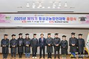 횡성군농업인대학은 21일 횡성군농업기술센터에서 ‘2025년 제15기 횡성군농업인대학 졸업식’을 진행했다. 제15기 농업인대학은 지난 2월부터 11월까지 횡성사과, 횡성한우, 미래농업인, 농업경영최고사관CEO 등 4개의 과정을 운영했으며, 총 93회 425시간의 교육을 자체강사와 각 분야의 전문가 등을 초빙해 실습 위주의 현장 중심 교육으로 추진했다. 횡성군농업인대학은 횡성농업의 특화 발전을 위한 품목별 장기 기술교육 기관으로 자리잡고 있으며, 올해는 총 90명의 수료생을 배출했다. 졸업식에는 김명기 군수와 횡성군의회 의장을 비롯해 내빈 및 90여 명의 수료생이 참석했으며, 농촌자원과장의 학사보고를 시작으로 공로상 및 개근상, 성적우수상, 졸업장 수여, 축사, 답사, 기념촬영 순으로 진행됐다. 김명기 횡성군수는 “졸업생들이 오늘의 성취를 바탕으로 더 큰 도전과 성장을 이어가길 바라며, 앞으로도 농업·농촌이 미래 경제성장 동력으로서 지속적으로 발전할 수 있도록 다양한 농업인교육을 추진하겠다”고 말했다.