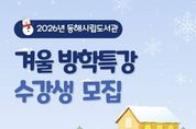 동해시는 2026년 겨울방학을 맞아 관내 초등학생을 대상으로 동해시립도서관에서 겨울방학 특강 프로그램을 운영한다고 밝혔다. 이번 특강은 1월 19일부터 1월 23일까지 발한도서관, 북삼도서관, 꿈빛마루도서관에서 운영되며 북트레일러 크리에이터, 뚝딱! 과학 탐험대, 겨울나라 도자기 공방 등 총 6개 과정, 66명을 모집할 계획이다. 접수는 1월 6일 오전 10시부터 동해시립도서관 홈페이지를 통해 선착순으로 진행되며, 신청은 홈페이지 내 독서문화 → 프로그램 신청 메뉴를 통해 가능하다. 김은서 평생학습과장은 “이번 겨울방학특강을 통해 지역 어린이·청소년들이 다양한 창작·독서 체험을 경험함으로써 창의력과 사회성 향상에 도움이 될 것”이라고 말했다. 재료비를 제외한 수강료는 무료이며, 세부 내용은 동해시립도서관 홈페이지에서 확인할 수 있다. 기타 문의사항은 발한도서관, 북삼도서관, 꿈빛마루도서관으로 문의하면 된다.