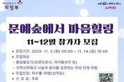 의정부시는 11월 3일 오전 9시부터 문예숲 커뮤니티센터 흥선점 프로그램 ‘문예숲에서 마음힐링’의 11~12월 참가자를 모집한다. 이번 프로그램은 돌봄종사자 또는 지역사회에서 나눔과 봉사를 실천하는 여성단체 회원의 정서적 안정과 자기 회복력을 높이기 위해 마련했다. 지난 10월까지 운영한 프로그램의 참가자들은 “짧은 시간에도 마음이 안정되고, 활력도 되찾았다”며 긍정적인 반응을 보이고 있다. 11월 19일부터 12월 10일까지는 ▲싱잉볼 명상 요가 ▲천연 파스 만들기 ▲마음 살핌 가드닝 3개 과정을 운영하며, 과정당 10명을 선착순으로 선정한다. 수강료는 무료이며, 온라인(홍보 포스터 내 QR코드 접속)을 이용하거나 문예숲 커뮤니티센터 흥선점에 방문해 신청(평일 오전 9시~오후 3시 운영, 점심시간 낮 12시~오후 1시, 주말 제외)하면 된다.