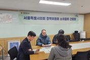 김용일 서울특별시의회 정책위원장(국민의힘, 서대문4)은 23일 11시 정책위원장실에서 법제과장, 법제정책팀장 등이 참석한 가운데 간담회를 갖고 22기 정책위원회 연구발표 및 워크숍 일정 계획 등을 논의하고 확정했다. 이날 간담회에서 김 위원장은 정책위원회 연구성과 공유와 연구역량 강화 등을 위해 지난 9일 전체회의에서 결정한 정책위원회 연구발표 및 워크숍 일정(3.19.~3.20.)에 대한 계획안을 마련했다. 먼저, 1일 차(3.19.(목))에는 연구발표회와 세미나를 개최하여 그동안 진행한 연구과제 발표와 향후 소위원회 활동 계획 등을 논의하고 2일 차(3.20.(금))에는 정책현장 방문활동 등을 실시할 예정이다. 김용일 정책위원회 위원장은 “연구성과 공유와 과제 발굴, 연구역량강화를 위해 내실 있는'연구발표회 및 워크숍'을 개최함으로써 서울 시정과 교육행정의 현안에 대해 실효적인 대안을 제시하도록 적극 노력하겠다.”고 밝혔다.