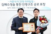 안양시민프로축구단 FC안양의 서준석 의무팀장이 위급한 상황에서 신속한 심폐소생술로 시민의 생명을 구한 공로로 안양시장 표창을 받았다. 안양시는 9일 오후 4시10분 시청 3층 접견실에서 표창 수여식을 열고 서 팀장에게 표창을 수여했다. 서 팀장은 지난해 12월 26일 안양종합운동장 인근에서 점심식사를 하던 중 식당 앞에서 심정지로 쓰러진 시민을 발견하고 즉각 심폐소생술(CPR)을 실시했으며, 구조대가 도착할 때까지 침착하게 응급조치를 이어가 소중한 생명을 구하는 데 결정적인 역할을 했다. 2014년부터 FC안양에 재직 중인 서 팀장은 평소 선수단의 건강과 안전을 책임지는 의료지원 업무를 수행해 왔으며, 이번 위급한 상황에서도 전문성과 사명감을 바탕으로 인명 구조에 나서 사회에 귀감이 되는 행동을 보여줬다. 서 팀장은 “현장에서 함께 신고하고 도움을 준 동료들 덕분에 소중한 생명을 지킬 수 있었다”며 “앞으로도 그라운드 안에서는 선수들의 건강을, 그라운드 밖에서는 시민의 생명을 지키는 데 최선을 다하겠다”고 소감을 밝혔다. 최대호 안양시장은 “갑작스러운 상황에서도 망설임 없이 시민의 생명