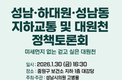 성남시의 미래 발전, 특히 상대원·하대원·성남동 및 성남하이테크밸리 일대의 교통과 환경 지도를 바꿀 중요한 공론의 장이 열린다. 성남시는 오는 1월 30일(금) 오후 4시 30분, 중원구보건소 지하 1층 대강당에서 「제2차 성남·하대원·성남동 지하교통 및 대원천 정책토론회」를 개최한다고 밝혔다. 이번 토론회는 고병용 성남시의원이 주최 및 주관하며, “지하로 잇는 교통, 미세먼지 없는 걷고 싶은 대원천”을 핵심 주제로 설정했다. 이는 해당 지역의 만성적인 교통 문제를 해결하고 주민들의 삶의 질과 직결된 환경을 개선하기 위한 실질적인 변화 방안을 모색하기 위해 마련되었다. 토론회에서는 단순히 현황을 진단하는 것을 넘어, ‘교통은 더 편리하게, 환경은 더 쾌적하게, 일상은 더 안전하게’라는 목표 아래 구체적인 정책 대안들이 논의될 예정이다. 주요 의제로는 ▲지하 교통체계 구축을 통한 지역 간 연결성 강화 방안 ▲미세먼지 걱정 없이 시민들이 걷고 즐길 수 있는 생태하천 대원천 조성 방안 ▲노후화된 성남하이테크밸리의 경쟁력 강화 및 인근 주거지역과의 성공적인 상생 발전 모델 제시 등이 심도 있게 다뤄진다. 행사는 배채영 박사의 발제로 시작되어 관련 주제에 대한 전문적