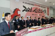 포항시의회는 병오년 새해를 맞아 2일 오전 시의회 1층 로비에서 신년인사회를 개최했다. 이날 신년인사회에는 김일만 의장을 비롯한 시의원, 이강덕 시장과 서재원 정무특보 등 시청 간부 공무원, 김정재‧이상휘 국회의원, 경북도의회 이동업·연규식·서석영·손희권·이칠구 도의원, 공원식 포항지역발전협의회장, 진병수·박태식·이상구·문명호 전 시의회 의장, 한명희 의정회장, 이두우·강한국·김경춘·이순동 전 의원을 비롯한 전직 시의원 등 총 100명이 참석했다. 의원들과 내빈들은 새해 덕담을 나누고 의정 철학을 담은 ‘마부정제(馬不停蹄 : 달리는 말은 말굽을 멈추지 않는다)’가 새겨진 시루떡을 자르며, 2026년 포항시의회 의정 운영 방향과 비전을 공유했다. 김일만 의장은 신년사 통해 “지난 한 해 우리는 쉽지 않은 여건 속에서도 K-스틸법 제정과 글로벌 AI 데이터센터 유치 등을 통해 도시의 산업 체질을 바꾸기 위한 기반을 다지며, 포항-영덕 고속도로 개통, 국제학교 유치 등 시민의 삶의 질 향상을 위해서도 지속적인 노력을 기울여 왔다”며, “병오년 새해에도 우리 앞에 직면한 과제를 하나하나 극복해 포항이 또 한 번의 도약