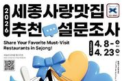 세종시문화관광재단은 지역 대표 맛집 발굴을 위해 4월 8일부터 23일까지 ‘2026 세종사랑맛집’ 선정을 위한 시민 참여형 설문조사를 실시한다고 밝혔다. ‘세종사랑맛집’은 시민의 직접 추천과 전문가 심사를 거쳐 선정되는 세종시 대표 음식점으로, 지난 2025년에는 총 44개소가 선정되어 지역 미식 관광의 핵심 자원으로 활용되고 있다. 특히 올해는 2027 충청권 하계 세계대학경기대회(U대회)를 앞두고 있는 만큼, 일반 음식점을 중심으로 하되 다국어 메뉴판과 외국어 소통 가능 인력 등 ‘외국인 친화 서비스’ 역량을 갖춘 업소도 함께 발굴할 계획이다. 추천 대상은 세종시 소재 일반음식점 중 영업신고일로부터 1년이 경과한 업소이며, 프랜차이즈 가맹점은 제외된다(단, 본점은 가능). 또한 최근 1년 이내 위생 관련 행정처분이나 원산지 표시 위반 등의 이력이 있는 업소는 최종 선정에서 제외하여 공신력을 확보할 예정이다. 한경아 관광사업실장은 “시민들이 직접 추천한 ‘세종사랑맛집’은 세종시를 찾는 관광객들이 신뢰할 수 있는 지역 대표 관광 자원이 될 것”이라며, “국제 행사를 대비해 내외국인 모두 편리하게 이