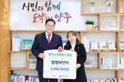 양주시가 31일 엠엠씨앤지로부터 연말을 맞아 이웃돕기 성금 500만 원을 기탁받았다. 이날 기탁식에는 오경옥 대표가 참석했으며, 기탁된 성금은 경기 사회복지공동모금회를 통해 양주시 취약계층 지원에 사용될 예정이다. 오경옥 대표는 “한 해를 마무리하는 뜻깊은 날, 우리 주변의 어려운 이웃들에게 도움을 드리고자 기탁을 결정했다”며, “기업 경영과 함께 지역 사회 봉사 현장에서 직접 보고 느꼈던 어려운 분들의 고충을 덜어드리는 데 이 성금이 작게나마 보탬이 되길 바란다”고 전했다. 시 관계자는 “2025년의 마지막 날을 아름다운 나눔으로 장식해주신 오경옥 대표님께 진심으로 감사드린다"며, "지역 경제 발전에 이바지하는 기업인이자, 다양한 사회단체 활동으로 나눔을 실천하시는 대표님의 진심이 추운 겨울을 보내는 취약계층에게 큰 희망이 될 것"이라고 화답했다.