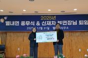 남양주시는 지난달 31일 열린 ‘2025년 별내면 종무식’에서 별내면 기관단체장협의회가 지역 내 취약가구 지원을 위해 후원금 200만 원을 별내면 지역사회보장협의체에 기탁했다고 2일 밝혔다. 이번 후원은 한 해의 마지막을 뜻깊게 마무리하고, 지역사회 구성원 간 연대와 나눔을 실천하고자 마련된 자리에서 이뤄졌다. 기탁된 후원금은 향후 별내면 취약가구의 안정적인 생활 지원과 맞춤형 복지사업 추진에 활용될 예정이다. 장태식 별내면 기관단체장협의회 부회장은 “지역과 함께 나눔을 실천할 수 있어 뜻깊게 생각한다”며 “앞으로도 지역과 함께하는 상생하는 지역 공동체를 만들기 위해 최선을 다하겠다”고 말했다. 김혜연 별내면장은 “이번 종무식은 지역 기관과 단체가 한자리에 모여 올 한 해를 되돌아보고 새로운 출발을 다짐하는 의미 있는 자리였다”며 “앞으로도 일상 속 나눔이 자연스럽게 이어지는 별내면을 만들기 위해 함께 노력하겠다”고 밝혔다.