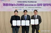 영종구 출범 원년을 맞아 올해 새롭게 개관한 ‘영종하늘누리센터’의 안정적·체계적 운영을 위해 인천시 중구가 인천시 교육청, 운서중학교와 손을 맞잡았다. 김정헌 인천 중구청장과 도성훈 인천시 교육감, 김성오 운서중학교장은 10일 오후 영종하늘누리센터 하늘배움터에서 이러한 내용의 ‘인천운서중 학교복합시설(영종하늘누리센터)의 운영과 관리에 관한 업무 실시협약’에 서명했다. ‘영종하늘누리센터’는 인천 중구가 운서중학교 부지 내 일부를 무상으로 제공받아 하늘초롱길 69 일원에 지하 1층, 지상 4층 연면적 5,635㎡ 규모로 건립한 ‘학교복합시설’이다. 지난 2024년 6월 첫 삽을 떠 올해 1월 건립 공사를 모두 마쳤으며, 3월 준공식을 개최한 후 현재는 운영 본격화에 행정력을 집중하고 있다. 특히 다함께돌봄센터 7호점(거점형), 육아종합지원센터, 가족센터, 영종하늘누리 작은도서관이 지난 2월부터 입주해 다양한 복지·문화 서비스를 구민들에게 제공하고 있다. 이번 협약은 지난 2021년 영종하늘누리센터 건립을 위해 체결한 기본 업무협약의 내용을 한층 더 구체화함으로써, 영종하늘누리센터의 원활한