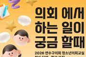 연수구의회는 2026년도 청소년 의회교실을 운영한다고 밝혔다. 이번 프로그램은 청소년들이 지방자치와 민주주의 원리를 실질적으로 체험할 수 있는 기회를 제공하며, 9세에서 24세까지의 청소년들이 참가할 수 있다. 청소년 의회교실은 참가자들이 실제 구의원이 되어 본회의장에서 의사결정 과정을 경험하는 현장 중심의 교육이다. 프로그램은 참여 연령과 교육 수준에 맞춰 ‘체험형’과 ‘주도형’ 두 가지로 나뉜다. ▲ 체험형 의회교실(9~24세 대상): 의회 시설 견학과 시나리오 기반의 모의 의회를 통해 의회의 기본적인 운영 절차를 익히는 과정이다. ▲ 주도형 의회교실(13~24세 대상): 참가자가 직접 안건을 선정하고 제안 설명부터 찬반 토론, 표결까지 의사 진행 전 과정을 설계하는 심화 프로그램이다. 박현주 의장은 “이번 청소년 의회교실이 지역 청소년들에게 지방자치의 중요성을 알리고, 지역사회 문제에 대해 스스로 고민하는 기회가 되기를 바란다”며, “청소년들이 책임감 있는 시민으로 성장할 수 있도록 의회 차원에서 지속적인 지원을 아끼지 않겠다”고 말했다. 청소년 의회교
