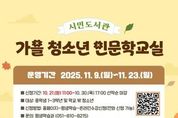 부산광역시립시민도서관은 오는 11월 9일부터 23일까지 시민도서관에서 부산 지역 중학생과 학교 밖 청소년 30명을 대상으로 ‘가을 청소년 인문학 교실’을 운영한다. 이번 프로그램은 청소년들이 철학과 문학을 통해 스스로의 삶을 돌아보고, 깊이 있는 사고력과 자기 성찰의 힘을 기르도록 돕기 위해 마련됐다. 프로그램은 일상의 고민에서 철학적 질문을 찾고 생각을 확장해보는 ▲고민이 철학이 되는 시간과 헤르만 헤세의 ‘수레바퀴 아래서’를 읽고 함께 토론하며 사고해보는 ▲세계문학, 청소년을 만나다 총 2개 과정으로 구성했다. 참가 희망자는 10월 21일 오전 11시부터 30일 오후 5시까지 시민도서고나 홈페이지를 통해 선착순으로 신청하면 된다. 자세한 문의는 도서관 평생학습과로 문의하면 된다. 이은경 시민도서관장은 “이번 프로그램이 철학과 문학을 매개로 청소년들이 삶을 성찰하고 사고의 폭을 넓히는 기회가 되길 기대한다”고 전했