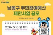 인천시 남동구는 주민이 직접 지역에 필요한 사업을 제안하고 예산 편성에 참여할 수 있도록 ‘2026년 주민참여예산 제안사업 공모’를 오는 5월 15일까지 진행한다고 2일 밝혔다. 주민참여예산제도는 예산의 편성부터 집행, 결산까지 전 과정에 주민이 참여하는 제도로, 재정 운영의 투명성과 건전성을 높이고 주민 의견을 구정에 반영하기 위해 운영되고 있다. 참여 대상은 남동구민뿐만 아니라 남동구 소재 직장인과 단체까지 포함되며, 제안은 남동구 누리집을 통한 온라인 신청과 함께 사업 제안 신청서를 작성해 우편·팩스·방문으로도 가능하다. 이번 공모는 일상생활 속 불편 해소와 지역 문제 개선을 위한 공공성 있는 사업을 대상으로 하며, 제안사업은 건당 최대 5억 원 이내에서 신청할 수 있다. 다만 예산이 수반되지 않거나 법령 및 예산편성 기준에 맞지 않는 사업, 특정 단체 지원 또는 특정 제품 홍보를 목적으로 하는 사업, 단순 행사·축제성 사업, 중장기 계획이 필요한 사업 등은 공모 대상에서 제외된다. 접수된 제안사업은 관련 부서의 타당성 검토와 주민참여예산위원회 심의, 주민 온라인 투표 등 공론화
