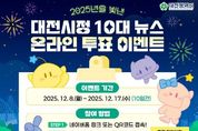 대전시는 2025년 시정 성과 가운데 시민들의 공감을 얻은 뉴스를 선정하기 위해 8일부터 17일까지 ‘2025년을 빛낸 대전시정 10대 뉴스’ 투표를 진행한다. 이번 시정뉴스 투표는 올 한 해 다양한 분야에서 성과를 거둔 대전시정의 역동적인 변화를 시민들과 함께 나누고, 주요 정책에 대한 시민들의 선호도를 파악하기 위함이다. 투표 대상은‘대전 상장기업 67개, 시가총액 87조 원 달성’,‘2년 연속 방문객 2백만 명 돌파한 대전 0시 축제’, ‘’28년 개통 목표, 대전 도시철도 2호선 사업 본격화’,‘새로운 랜드마크, 갑천생태호수공원 개장’ 등 20건의 후보 뉴스다. 투표는 시민 누구나 참여할 수 있으며, 시 홈페이지, 공식 SNS(페이스북, 인스타그램 등)에 접속해 후보 중 3건을 선정하면 된다. 투표 참여자 중 500명을 추첨하여 커피 상품권을 지급하는 경품 이벤트도 진행한다. 최우경 대전시 대변인은 “올해 대전은 다양한 성과를 거뒀다”라며, “2025년 대전시정을 되돌아보며 성과를 한눈에 알 수 있는 이번 투표에 많이 참여해 주시길 바란다”라고 말했다.